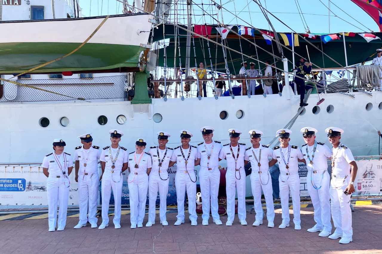 Durante la mañana, autoridades de Puerto Vallarta, como la directora de Turismo, Alejandra Cornejo, participaron en el recibimiento oficial del velero, un acto que incluyó un breve intercambio protocolario con los marinos colombianos. Posteriormente, el barco abrió sus pasarelas para iniciar el recorrido de visitantes.