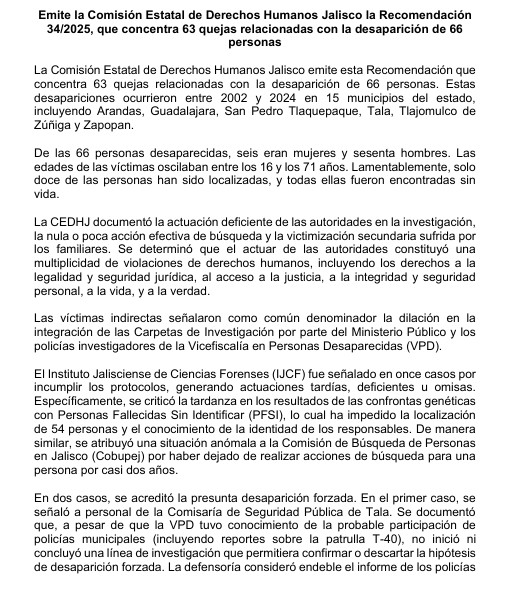 Entérate: CEDH Jalisco: Recomendaciones por 38 personas desaparecidas