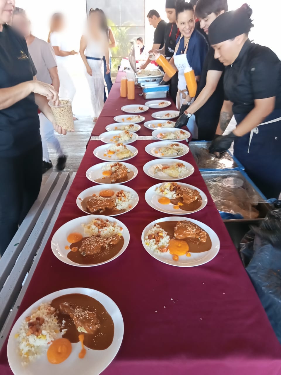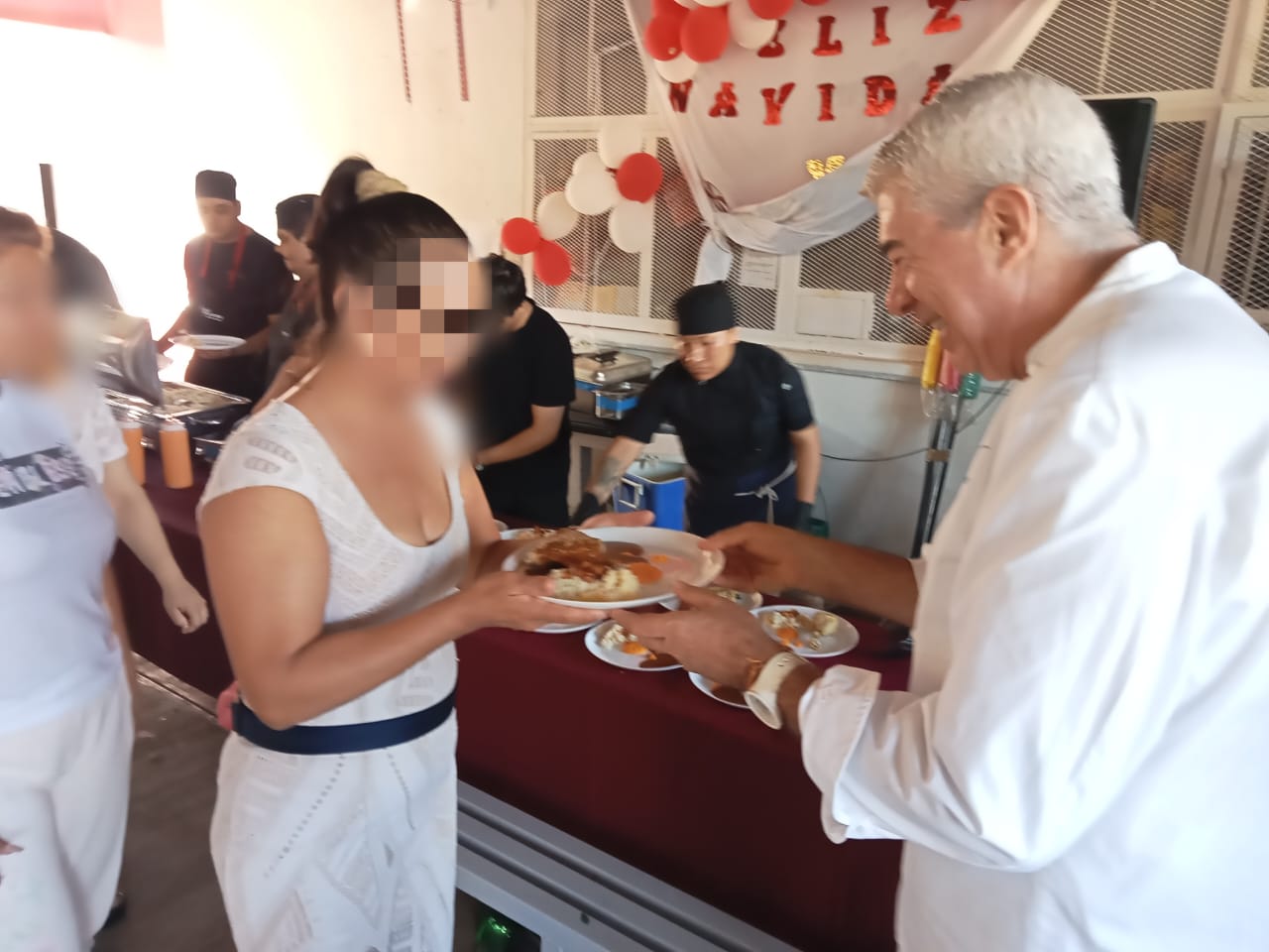 Más tarde se ofreció una comida de tres tiempos, preparada por el chef Thierry Blouet y su equipo, quienes trasladaron al interior del centro penitenciario una experiencia gastronómica completa. El servicio fue acompañado por bebidas aportadas por colaboradores locales que participan de forma recurrente en este encuentro anual.