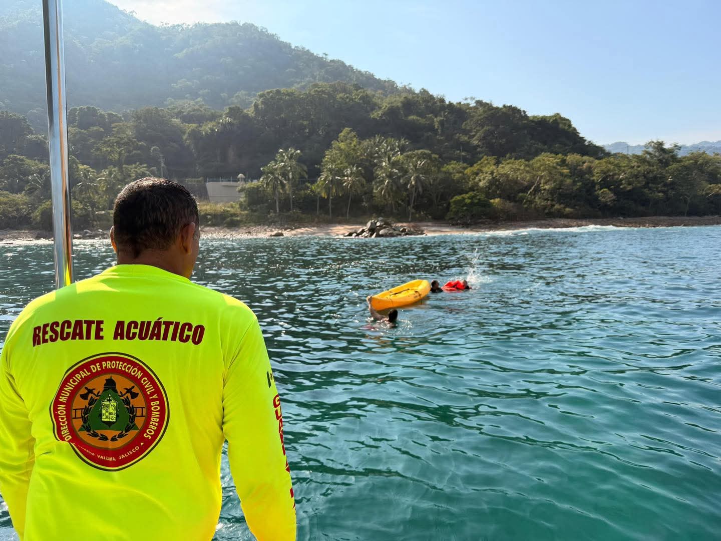 Este miércoles 3 de diciembre, elementos del área de Guardavidas de Protección Civil y Bomberos de Puerto Vallarta rescataron a dos personas extranjeras sobre la costa de la Bahía de Banderas, a la altura del área natural conocida como Los Arcos de Mismaloya.