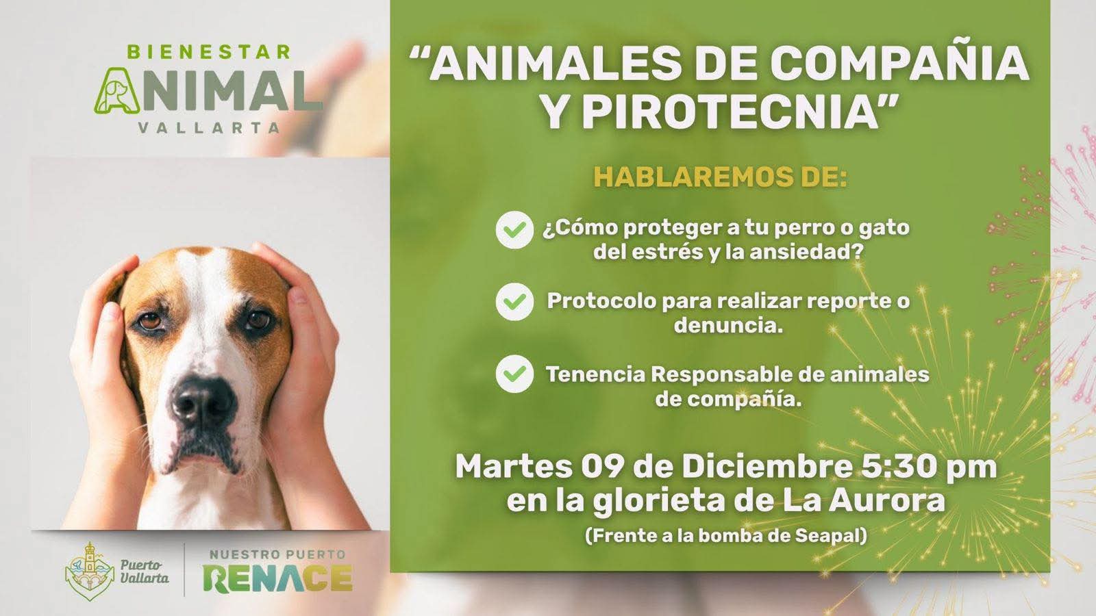 La actividad se realizará este martes 9 de diciembre a las 5:30 p.m. en la glorieta de La Aurora, frente a la bomba de Seapal. El Gobierno del Bien hace un llamado a las familias vallartenses a participar y prepararse mejor para proteger a sus animales de compañía durante estas celebraciones.