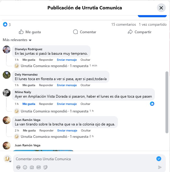 En ese sentido, algunos seguidores de Urrutia Comunica aseguraron que en sus colonias sí ha pasado la basura con normalidad en las últimas 24 horas, después del anuncio de Red Ambiental.