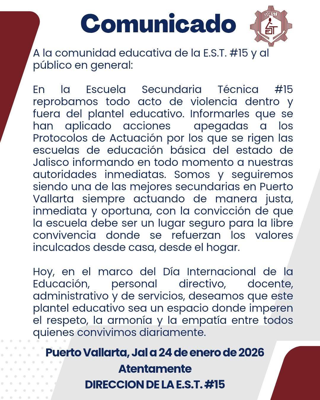 La Secundaria Técnica 15 reiteró su llamado a la comunidad educativa para mantenerse informada a través de los canales oficiales y señaló que la dirección permanece abierta al diálogo con madres y padres de familia.