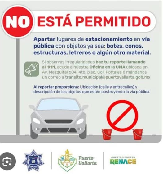 Puerto Vallarta, Jal.- La subdirección de Tránsito Municipal de Puerto Vallarta llevó a cabo un operativo en la zona turística de la ciudad para retirar objetos que apartaban lugares en estacionamientos públicos.